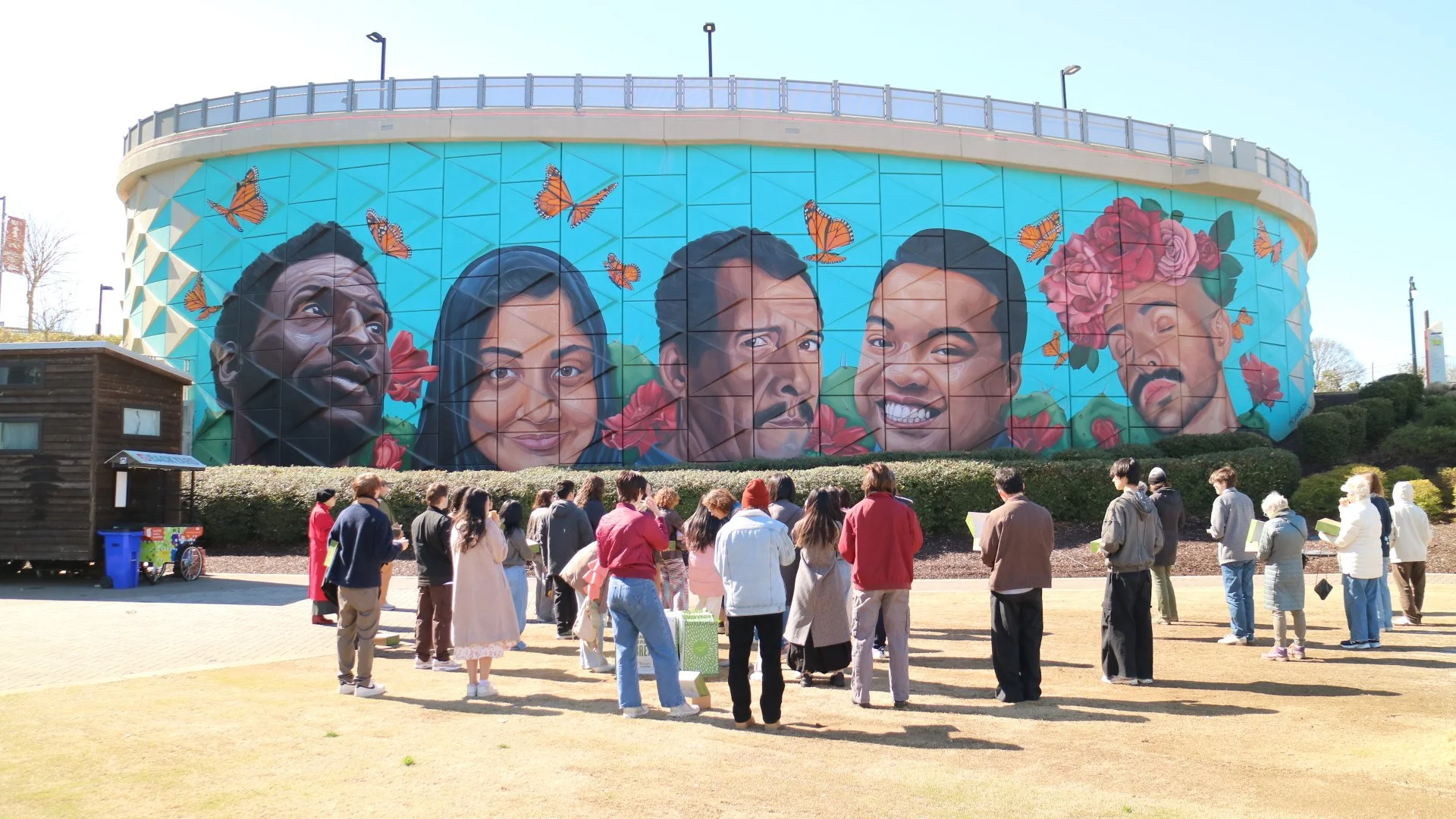 You and your fellow travelers will picnic in the shadow of one of Yehimi’s most celebrated murals, Monuments: Atlanta’s Immigrants, in a private lunch at the Mercedes-Benz Stadium’s Home Depot Backyard.
